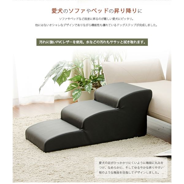ドッグステップ/ペット用品 【3段 ブラック】 幅40.5cm 合皮/合成皮革張地 ウレタンフォーム 〔リビング 室内犬〕【代引不可】 送料込!