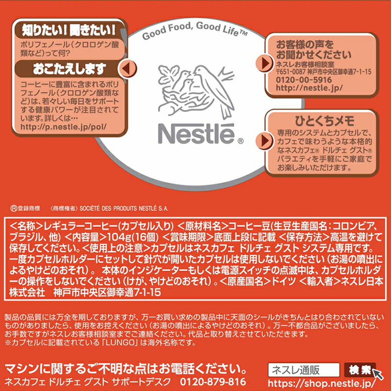 【原材料名】:コーヒー豆(生豆生産国名:コロンビア、ブラジル、他)【原産国】:ドイツ【輸入者】:ネスレ日本株式会社神戸市中央区御幸通7-1-15